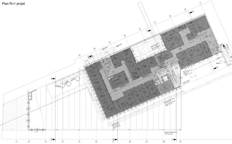 Ainsi, par l’apport de nombreuses ouvertures, la création de grandes surfaces libre par la démolition des cloisons et la création d’un plancher intermédiaire dans une grande hauteur cinq unités de bureaux avec des espaces collectifs ont pu être aménagés mettant à profit la configuration initiale en forme de belvédère.