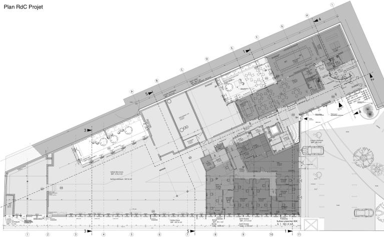 Les utilisateurs partagent entre eux deux patios créés principalement pour amener de la lumières au coeur de l’édifice, plusieurs salles de réunion, un banque d'accueil et un espace de vie destinés à la détente. La création d’une charte graphique, d'un logo et l’apport de mobiliers en lien avec ceci renforce l’idée de cohésion. Un nouvel aménagement extérieur augmente la capacité d’accueil du parking et améliore la qualité paysagère du pourtour de l’édifice.